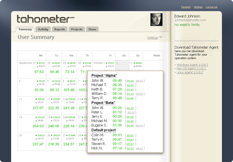 Do not be confused by a variety of platforms and operating systems. Tahometer time tracking is working on Windows, Mac and Linux.